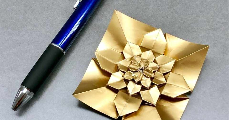 あじさい折り発展 金ピカver 電車内折り紙シリーズ再来 まさにぃ Note
