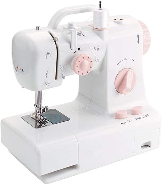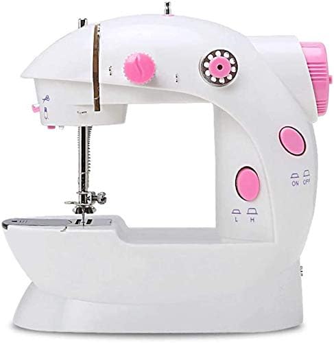 ミシン 電動小型ミシン ライトとフットペダルを装備した2本糸縫い 初心者に適した簡単操作で2段階のスピード調節が可能 ピンク色 テーブルなし 公式ストア